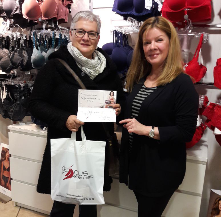 An unseren Messestand informierten wir über den Zusammenhang von Dessous und Vorsorge. Besonders liegt uns kompetente BH-Größen- und Passformberatung am Herzen. Wir hatten die Besucher und Besucherinnen gefragt: „Wie viele Frauen tragen laut Studien die richtige BH-Größe?“ Die richtige Antwort lautet: „Nur 30 %!“
